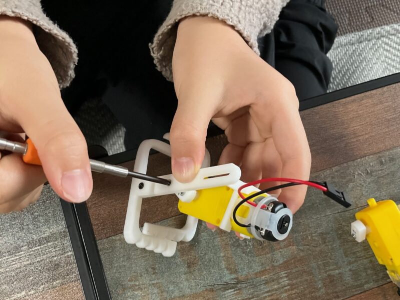 TTモーターという電池で動くモータを使って、歩くロボットを作ります。