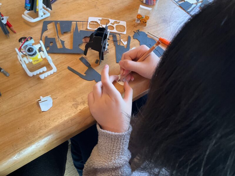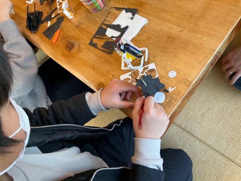 はじめは、足を逆につけたり、ネジの種類を待ちがえたり、と色々ありましたが、どこが違うのか、どうしたら良いかを自分で考えて、時間内に全員組み立てを完了させることが出来ました。